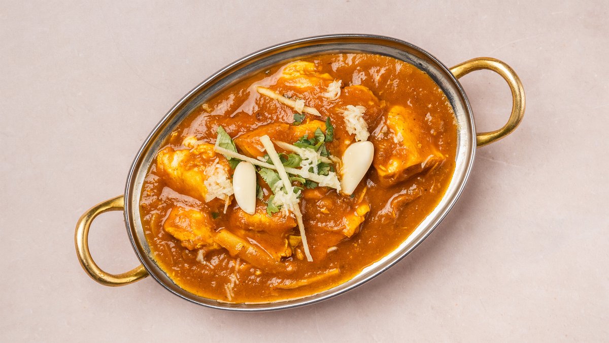 Rapeaksi paistetut paneer-kuutiot haudutetaan täyteläiseen makhani-kastikkeeseen – kypsät tomaatit, voi ja kerma – rakennettuna sipuli–inkivääri–valkosipuli-pohjalle ja viimeisteltynä ripauksella kuivatun sarviapilan aromia. Mieto | Väfhän tulinen | Sisältää maitoa