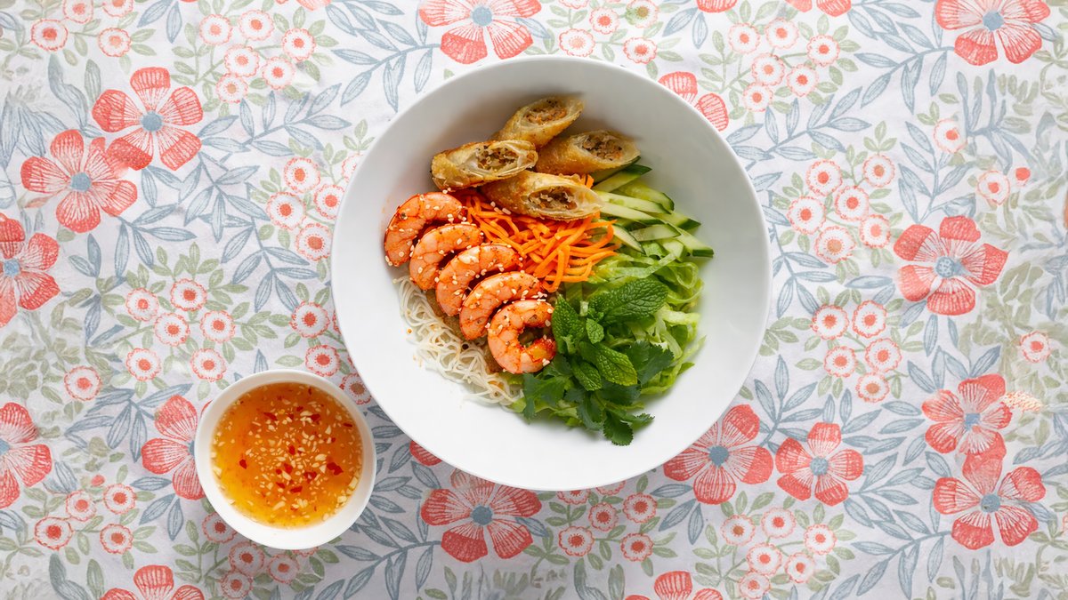Summer rolls with prawns/tofu and mushroom, salad and rice noodles 2pcs