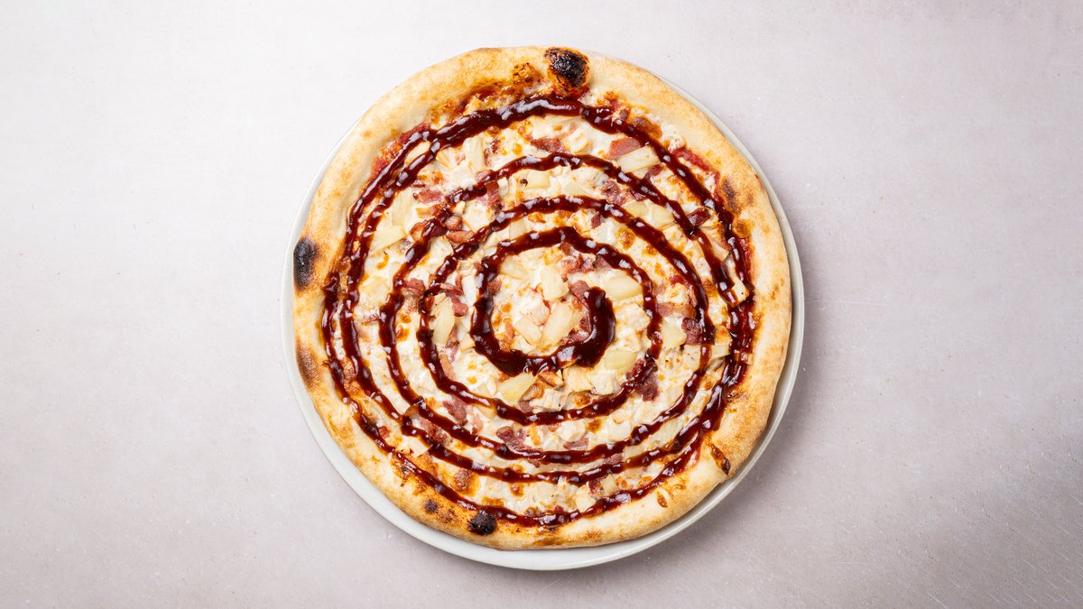 Mozzarella, kana, pekoni, ananas, bbq- kastike