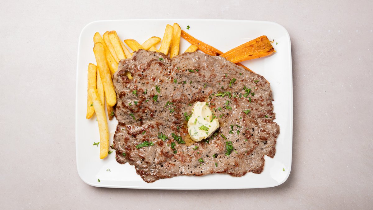 200 gr naudan ulkofile, Ranskanperunoita ja persilja maustevoi