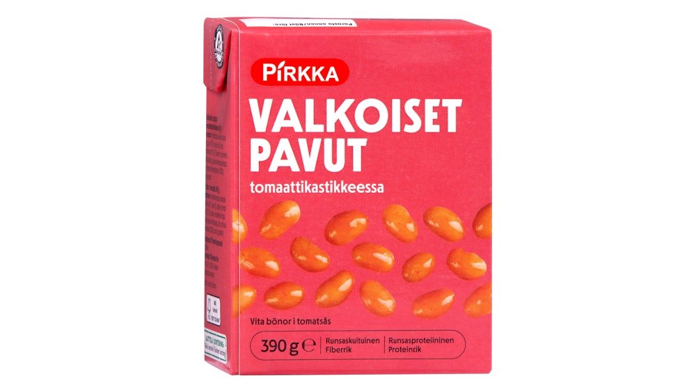 Pirkka valkoiset pavut tomaattikastikkeessa 390g