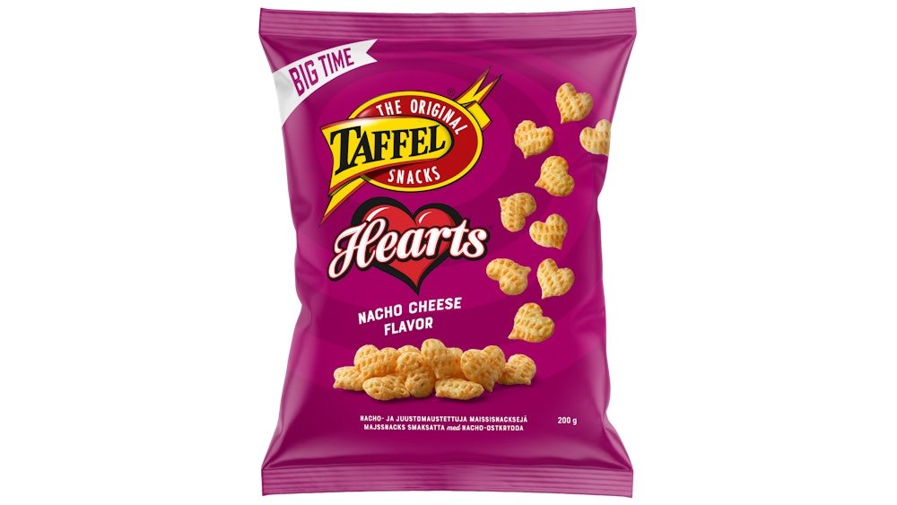 Taffel Hearts nacho cheese 200g maustettu maissisipsi