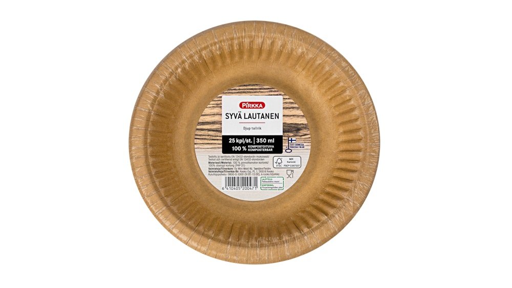Pirkka syvä lautanen 350ml 25kpl ruskea lakaton