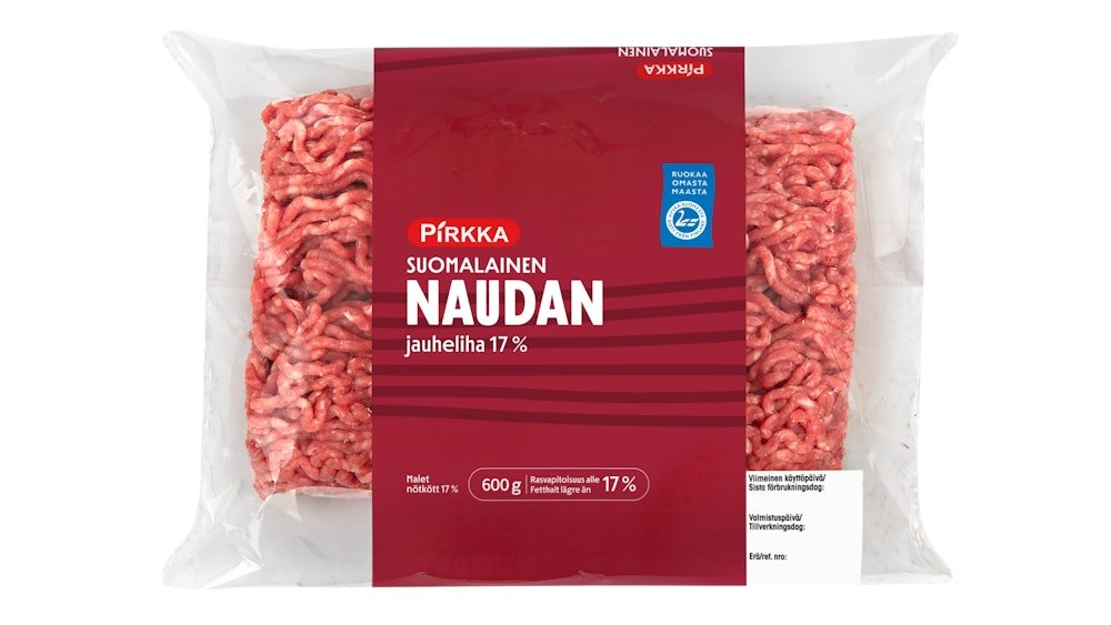 Pirkka suomalainen naudan jauheliha 17 % 600 g