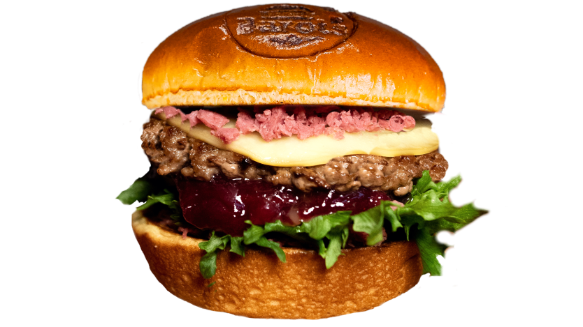 Pehmeiden briossisämpylöiden välistä löytyy rapeaksi paistettu naudanlihapihvi, cheddarjuustoa, ketsuppia, tomaattia, salaattia, punasipulia, maustekurkkua sekä valitsemasi Barot's -kastike.