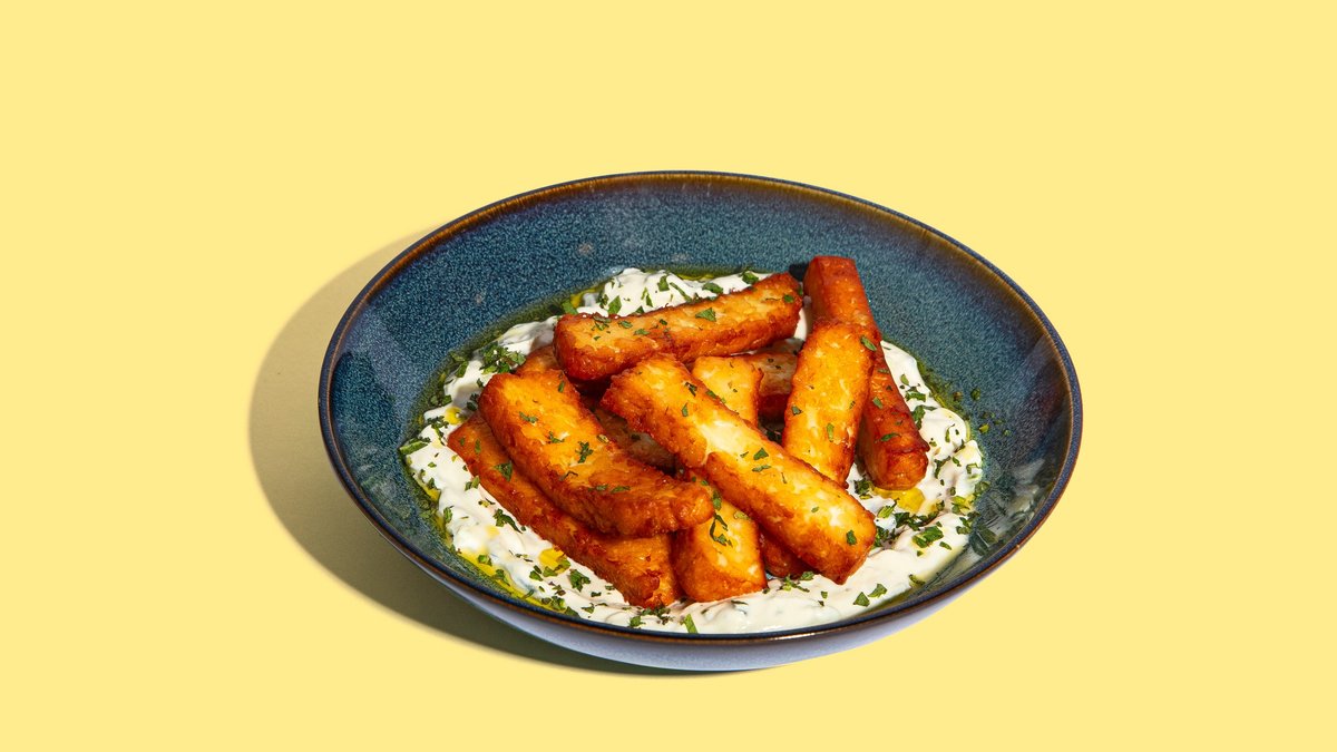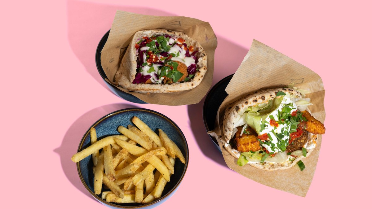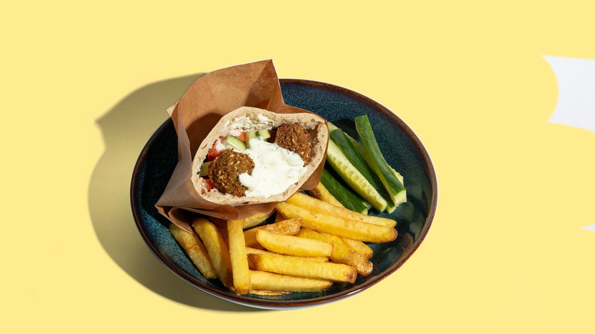 Falafel-ja Halloumipita ja Bataattiranskalaiset + dippi