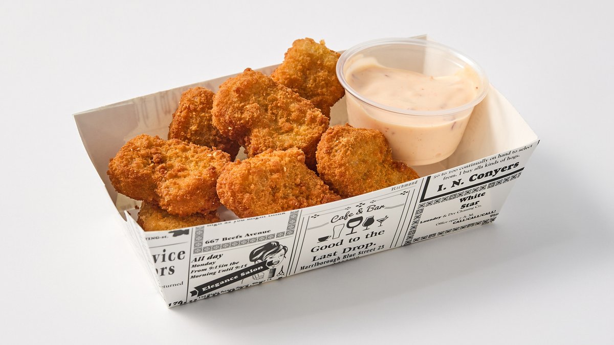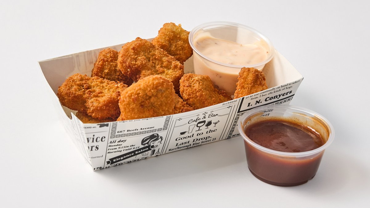 Herkullista tater tots perunaa, päällä cheddarkastiketta ja pekonihaketta