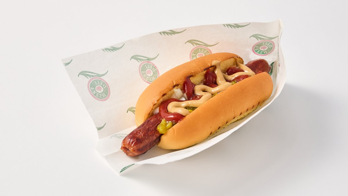 Mausteet: krakovanmakkara, premium sämpylä, sinappi, ketsuppi, sipuli, kurkkusalaatti