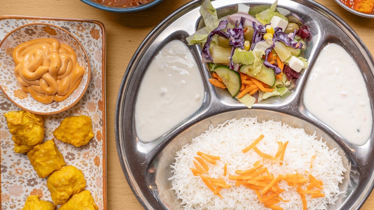 Pakora tarjoillaan talon chutneyn ja salaatin kera. G = Gluteeniton, L = Laktoositon, P = Pähkinätön.