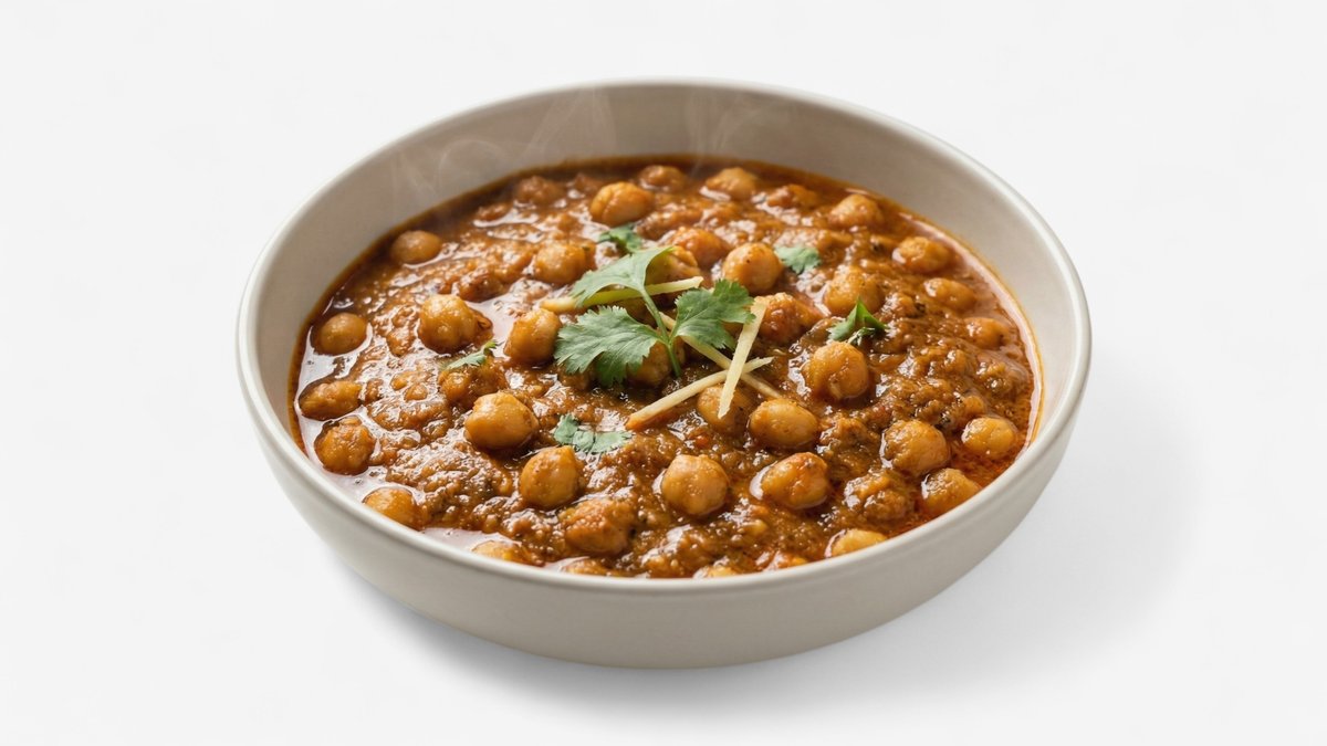 Kikherneitä valkosipulia ja sipulia masalakastikkeessa. Chickpea, garlic and onion in gravy masala sauce. (G, L)