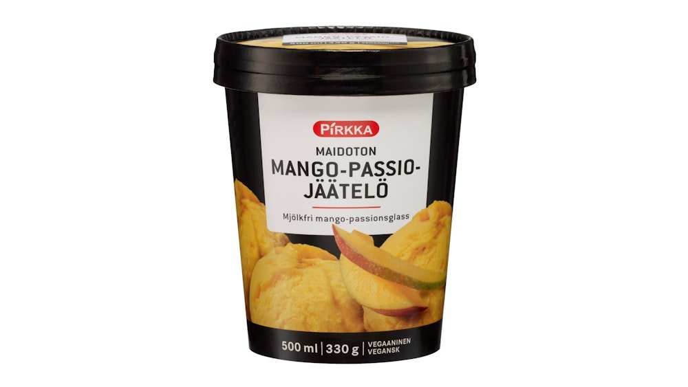 Pirkka maidoton mango-passiojäätelö 500ml/330g