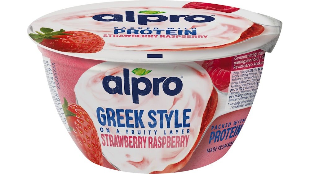 Alpro Greek Style proteiinipitoinen soijavalmiste 150g mansikka-vadelma