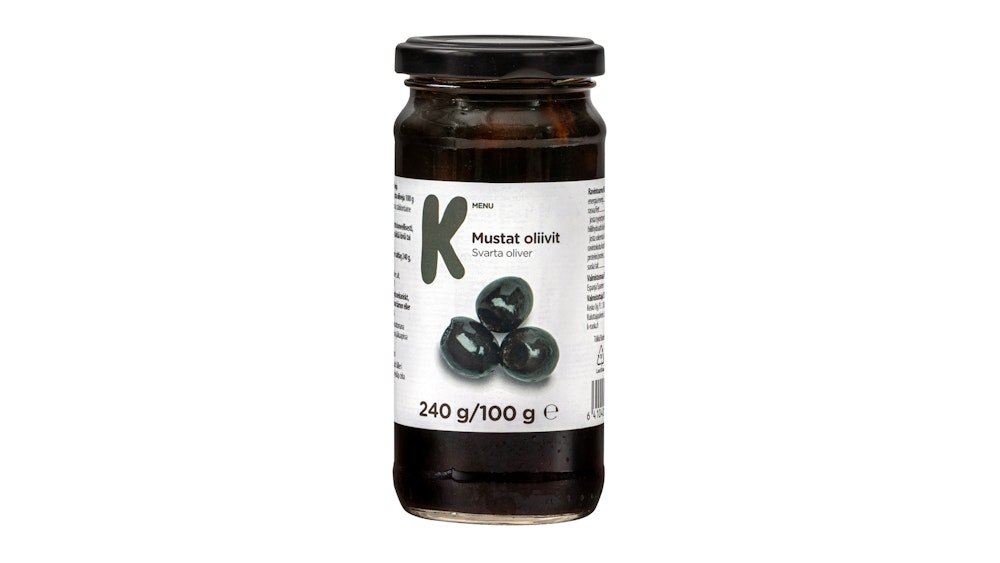 K-Menu mustat oliivit 240g/100g
