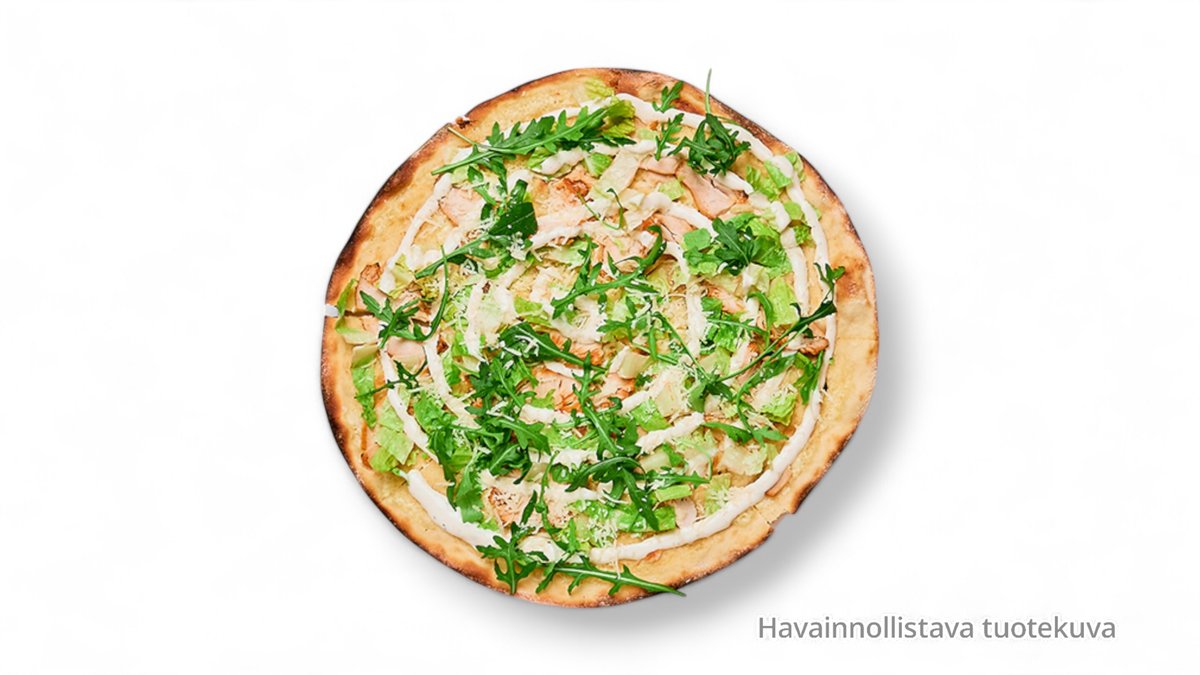 Ohueen pizzapohjaan, kebabliha, juusto, salaatti, talon kastike
