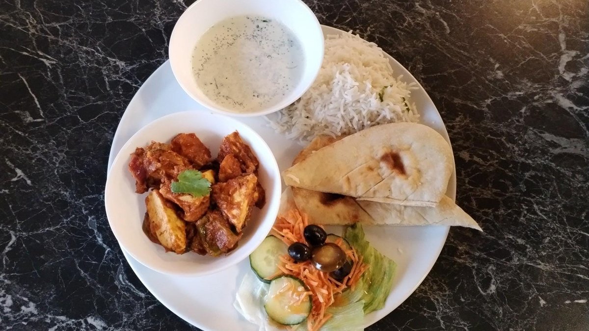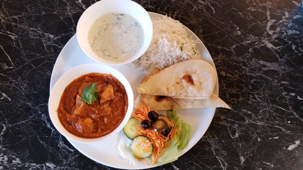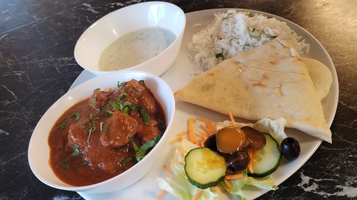 Lunch portion includes curry and rice. Naan bread, salad and raita are not included in the price.
