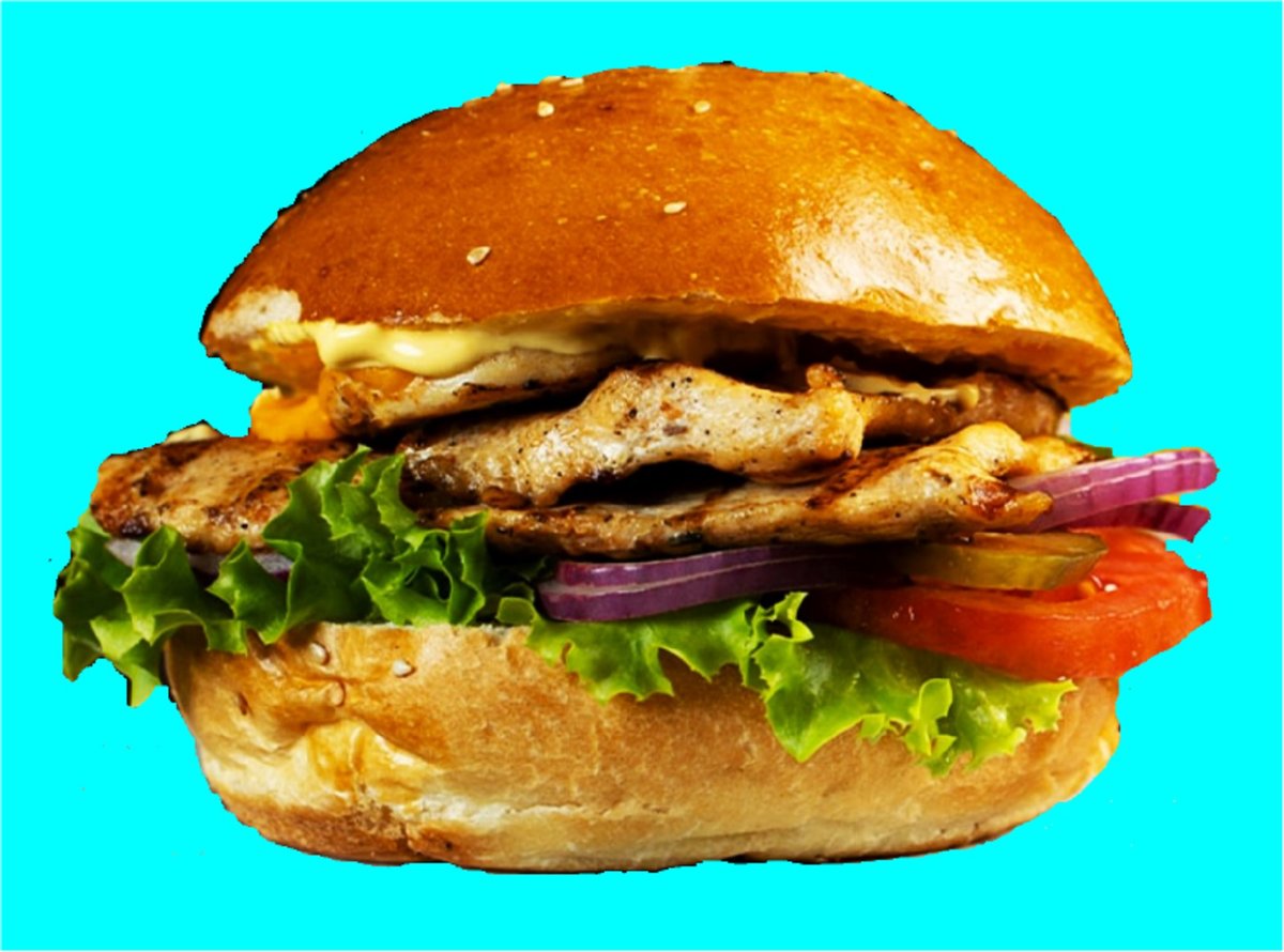 150gr parilassa paistettu kanafile, punasipuli, tomaatti, suolakurkku, talon burgermajoneesi, currymauste, ketsuppi, salaatti