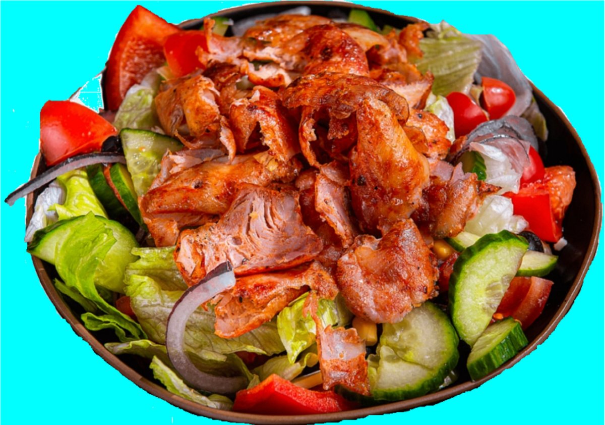 Parilapaistetty kebabliha , avikon, jäävuorisalaatti, tomaatti, punasipuli, suolakurkku, turkinpippuri, talon kebabkastike, talon majoneesi
