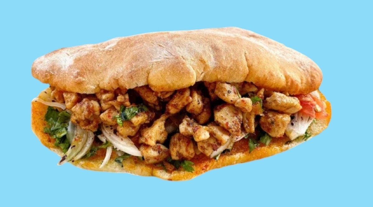 Pehmeäleipä, tolon kastikkeella ,kebabliha jäävuorisalaatti, punasipuli, tomaatti, suolakurkku, turkin pippuri, talon majoneesi