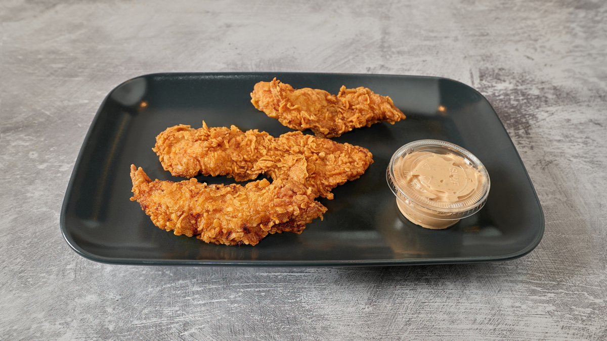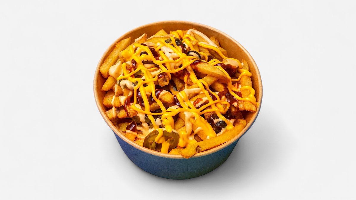 Crispy fries topped with chicken strips, jalapeños, olives, BBQ sauce, cheddar sauce, and our signature creamy sauce.