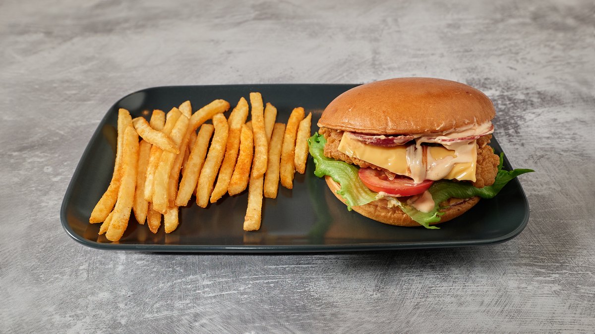 Our chicken burgers are also available in a meal (burger + fries + drink).