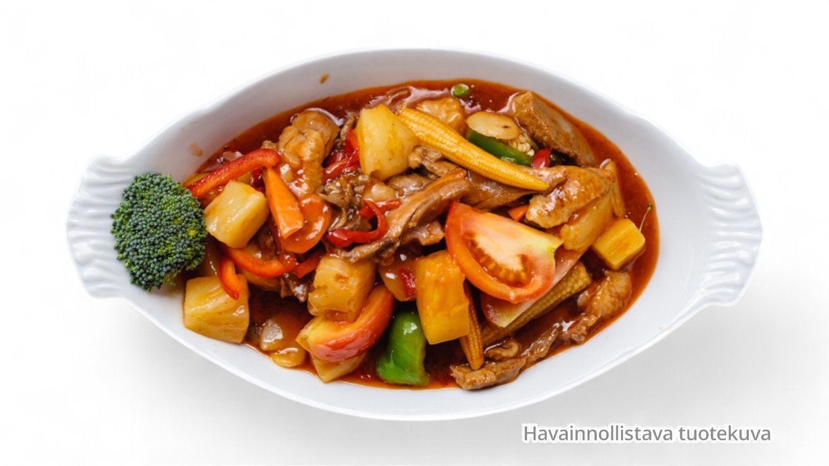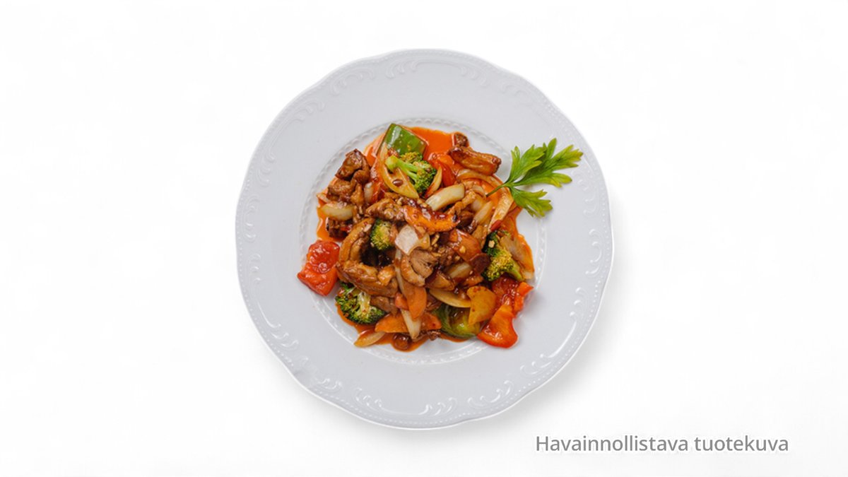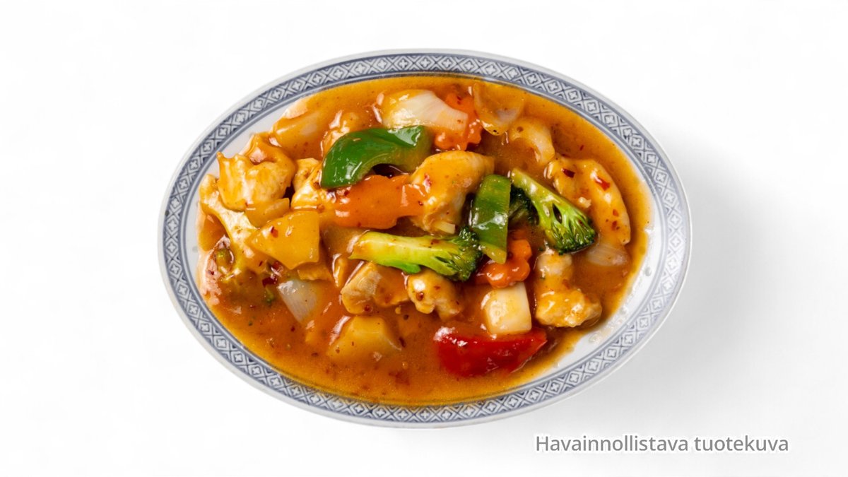 Friterattua kanaa hapanimelä kastikeessa (L,M)