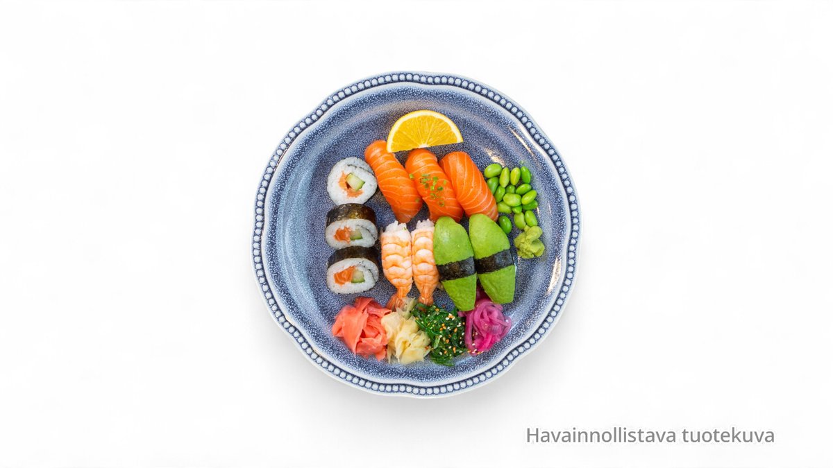 (lohi,tofu,kalmari,surimi,tonnikala,katkarapu,majone esi, soija ja merilevähiutaleet )
