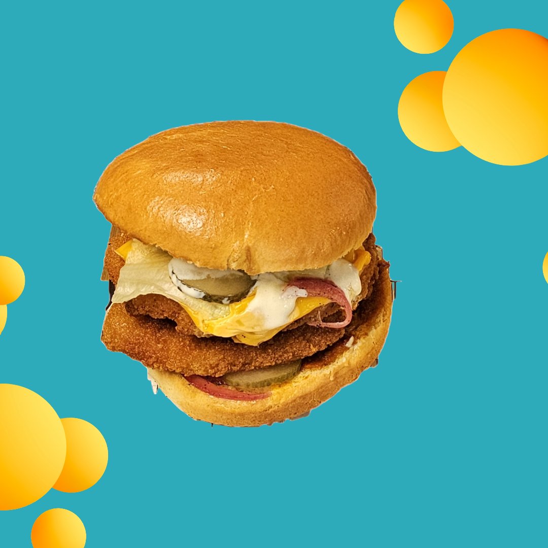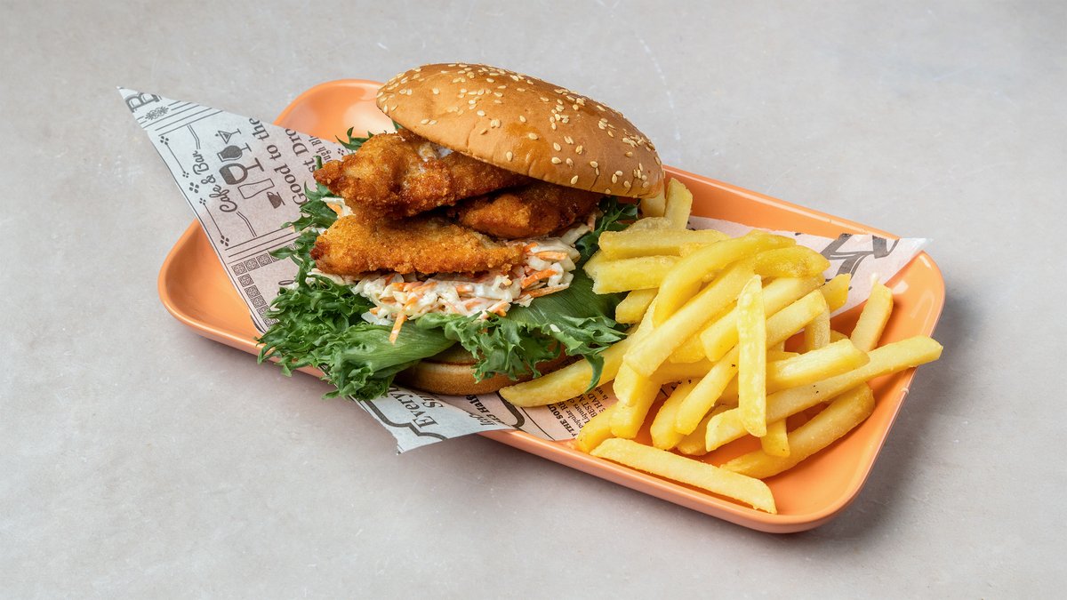 Friteerattu kanapihvi , salaattia, sipulia ja talon erikoiskastiketta. Sisältää gluteenia.