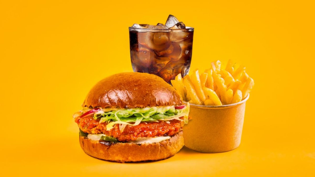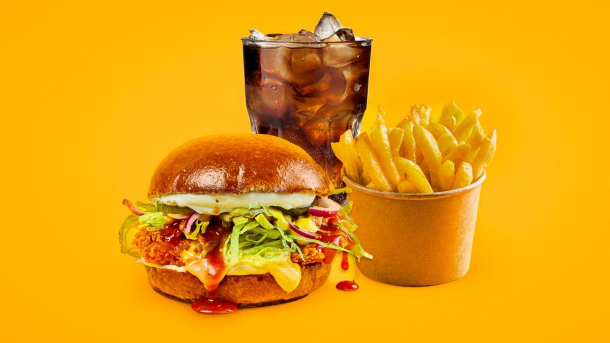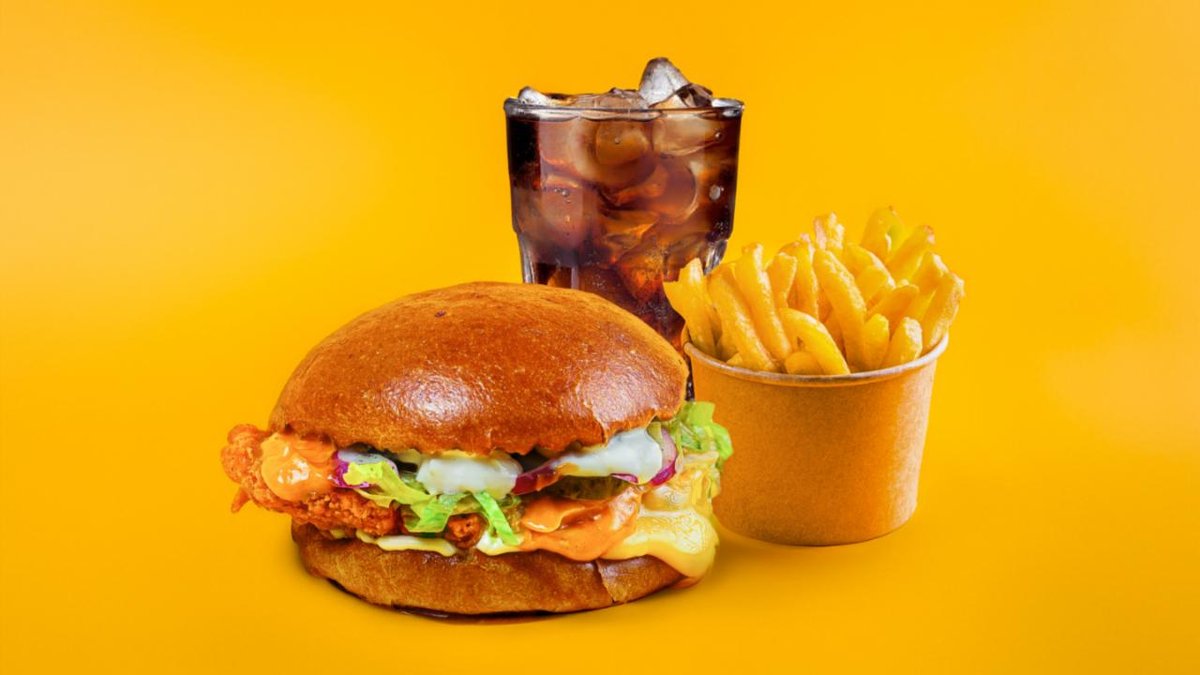 Spicy Burger (kana), ranskalaiset, dippi ja virvoitusjuoma