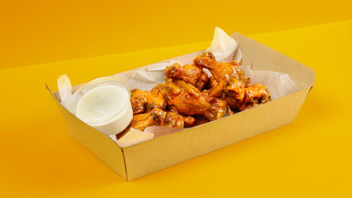 10 kpl siipiä buffalokastikkeella, 4 kpl siipiä korealaisella makealla chilikastikkeella, 4 kpl mozzarellatikkuja, 2 annosta ranskalaisia, 2 kpl 0,33 l juomaa ja 2 valitsemaasi dippiä.