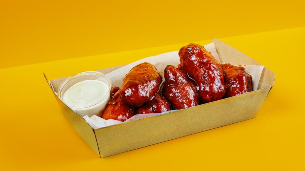 8 kpl paneroituja siipiä valitsemallasi kastikkeella ja dipillä.