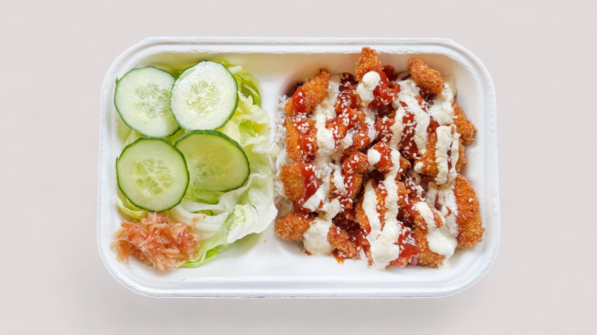 Chicken pop, kimchi, rice, garlic mayo, lettuce, cucumber, sesame seeds spring onions, choice of sauce, teriyaki, or hot sauce