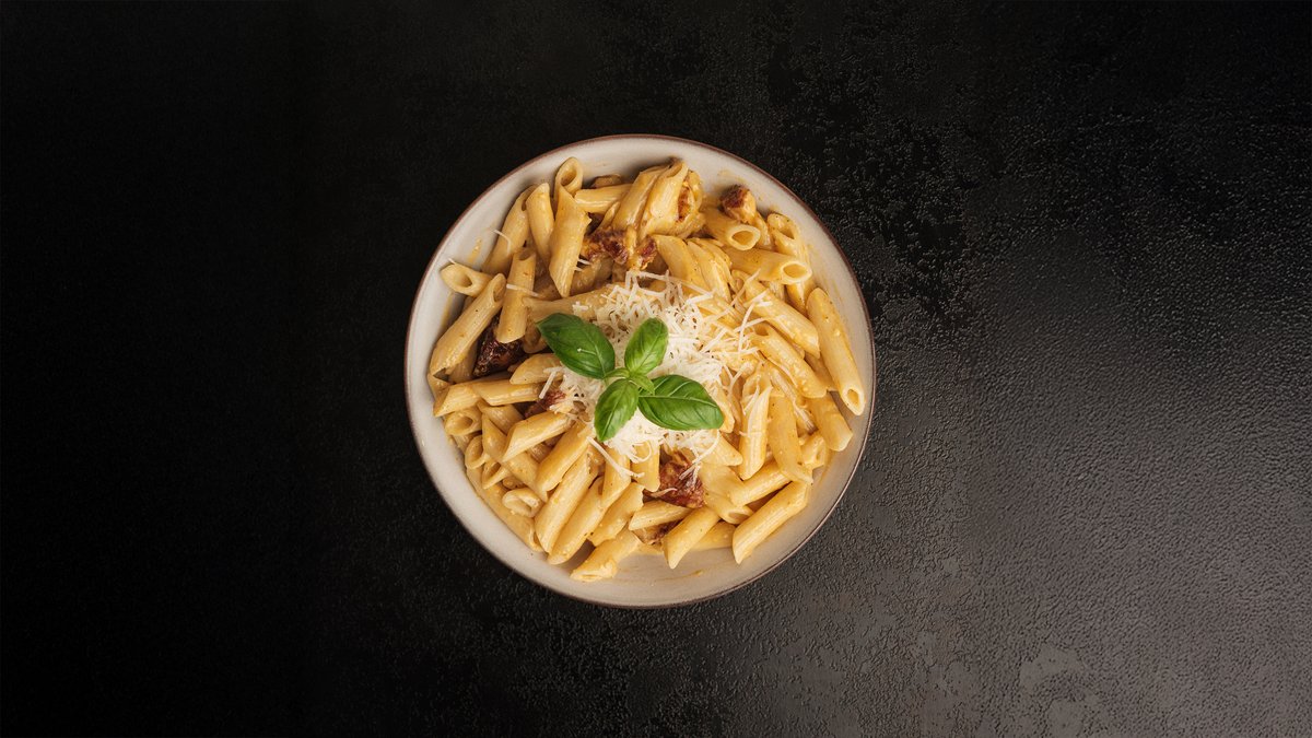 Punainen pestolevite, mozzarella, aurinkokuivattu tomaatti, basilika, oregano, mustapippuri, oliiviöljy