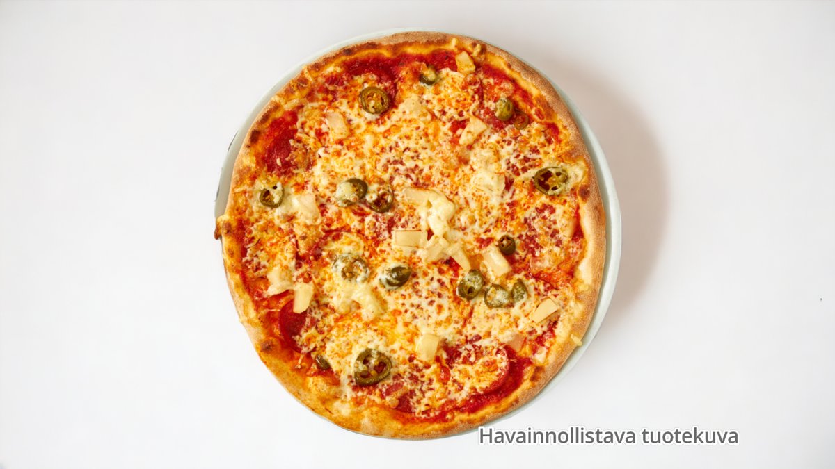 paprikaa, oliivi, maissi, sipuli, herkusieni ja porkkana