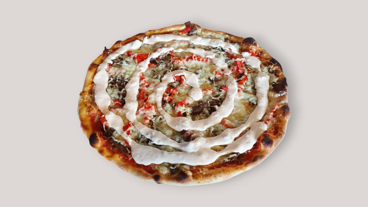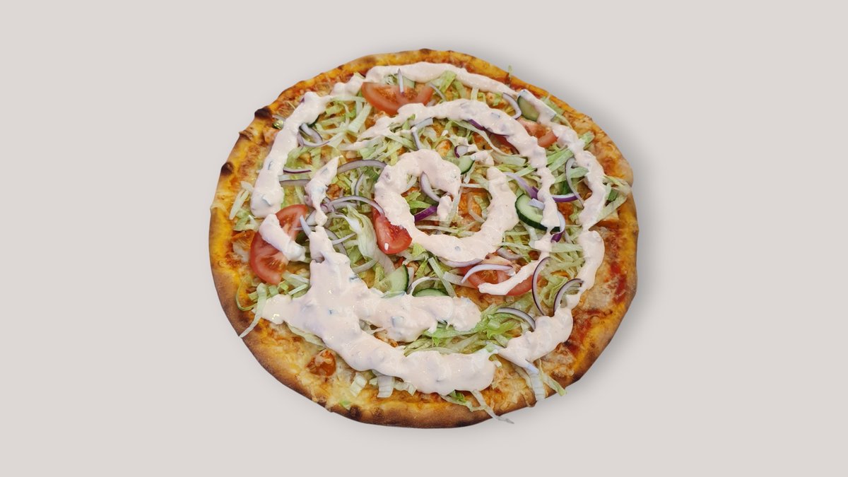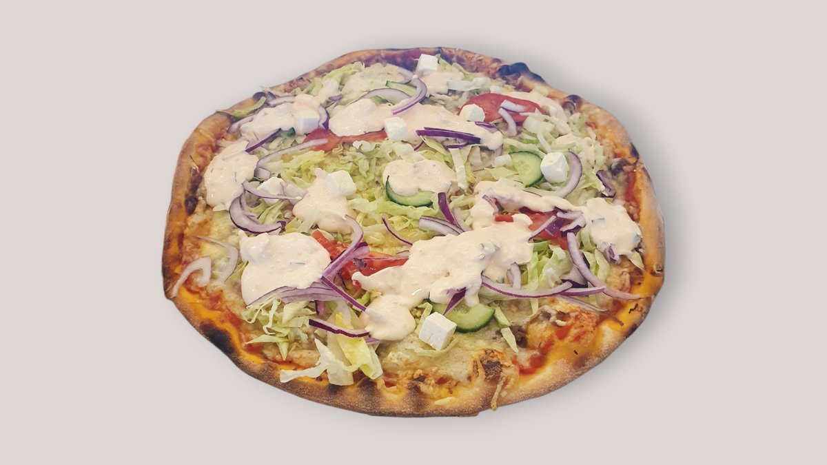 Kebab, tomaatti, fetajuusto, sipuli, kana, mozzarella