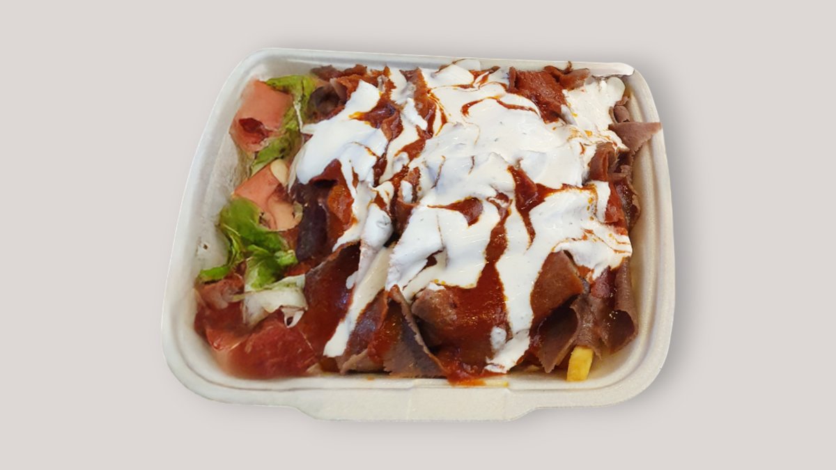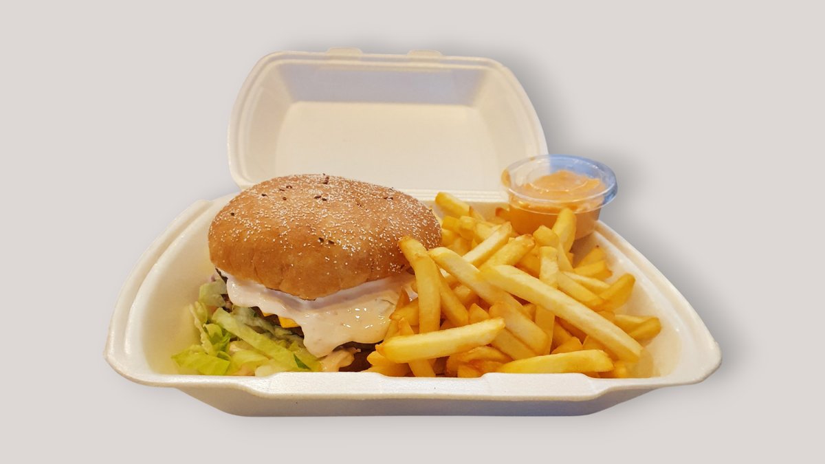 Kaikkiin annoksiin sisältyy: jäävuorisalaatti, tomaatti, suolakurkku, punasipuli, majoneesi, yksi dippi oman valinnan mukaan ja ranskalaiset.