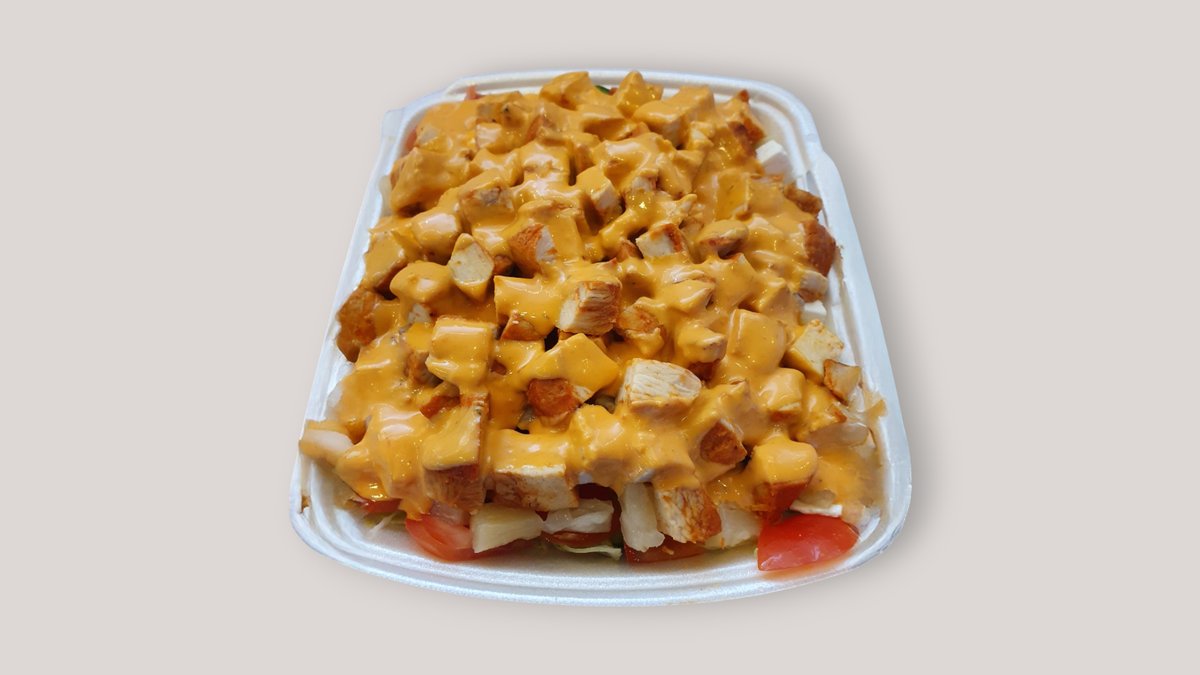 Kana,jalapeno,aurajuusto,jäävuorisalaatti,sipuli,kurkku,fetajuusto,tomaatti,dressing