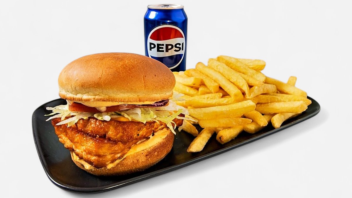 Yksi kappale rapeaksi friteerattua broilerinreisipalaa, pehmeä perunasämpylä, Burgaarina Chipotle-majoneesi, yksi viipale sulatettua cheddarjuustoa, suolakurkkuja, punasipulia, tomaattia ja tuoretta jäävuorisalaattia. Lisäksi ranskalaiset & valitsemasi 0,33l juoma.