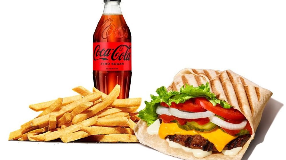 Isoon ateriaan sisältyy L-kokoinen lisuke, sekä 0,5 l pullojuoma. Naudanlihan alkuperämaa: EU-maat Kanatuotteiden alkuperämaa: Useat EU-maat