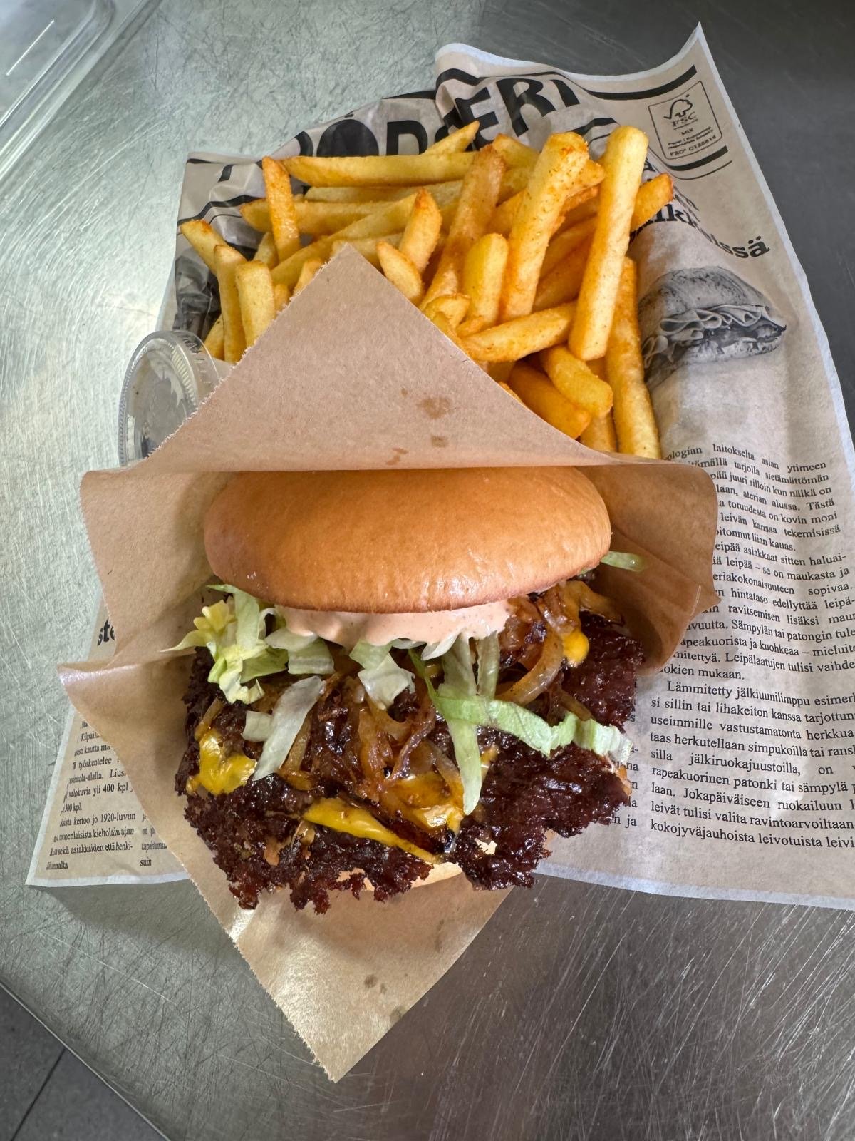 Käytämme 100% kotimaista naudanlihaa. Lihojen alkuperämaat: Suomi Pekoni - Belgia