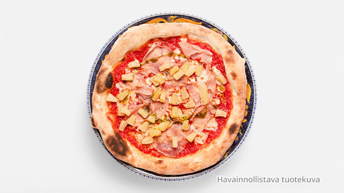 Valkosipuli, chilikastike, salami, pepperoni, ananas, kebab, jauheliha, aurajuusto, cheddarjuusto, tuplajuusto