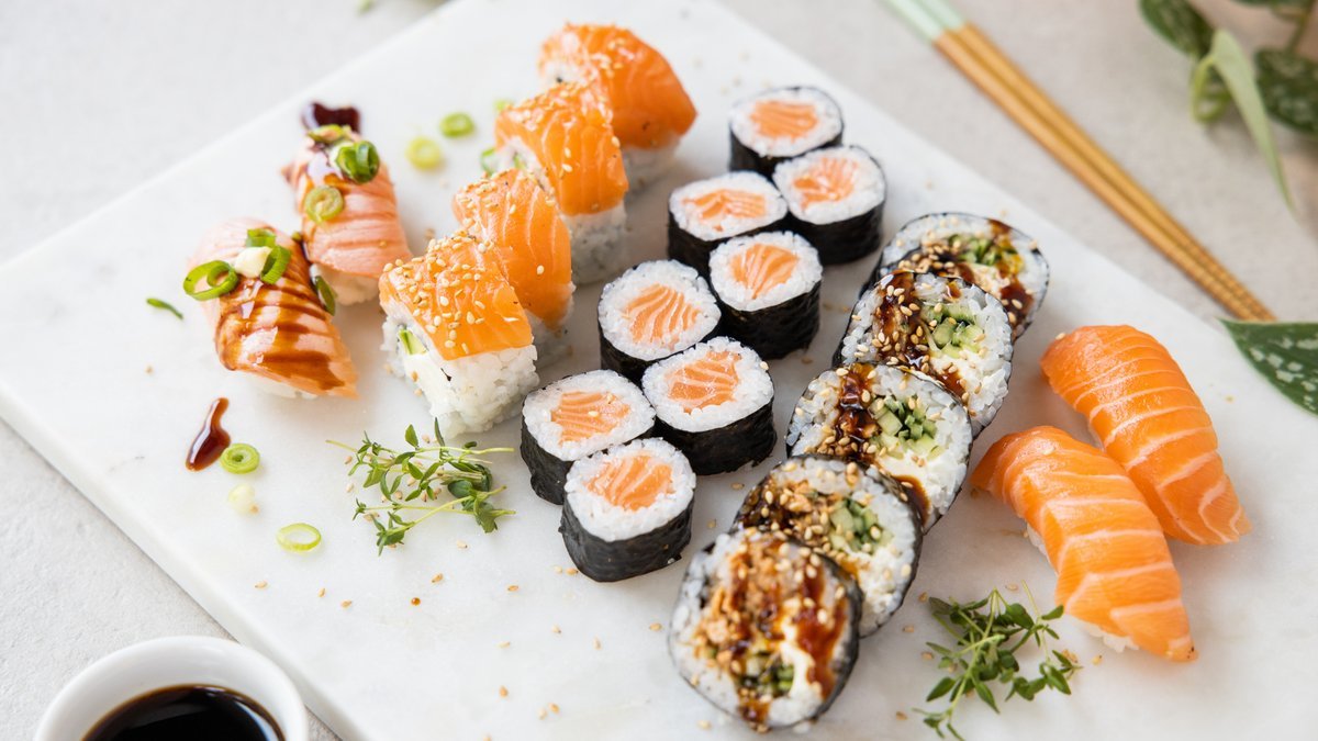 Tao maki 10kpl, Kap Verde maki 8kpl, Lohi nigiri 2kpl, Ebi nigiri 2kpl