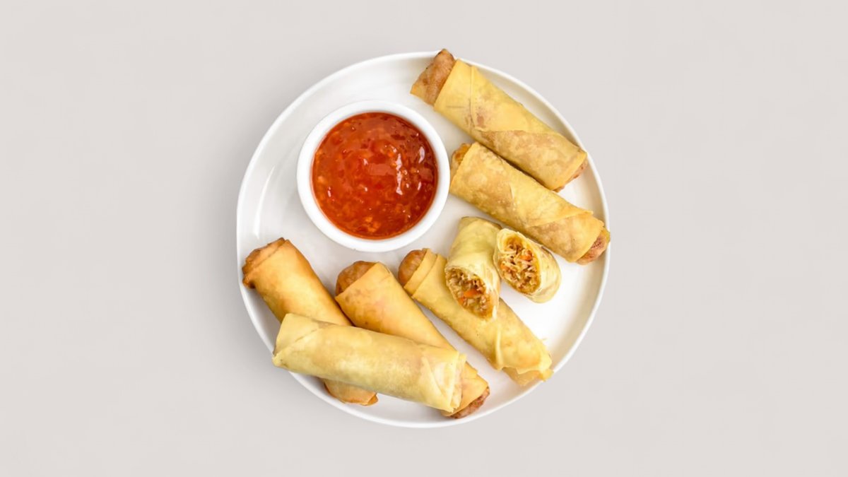 Uppopaistetut kevätkääryleet kasvistäytteellä, sis. sweetchili dippikastikkeen Allergeenit: gluteeni
