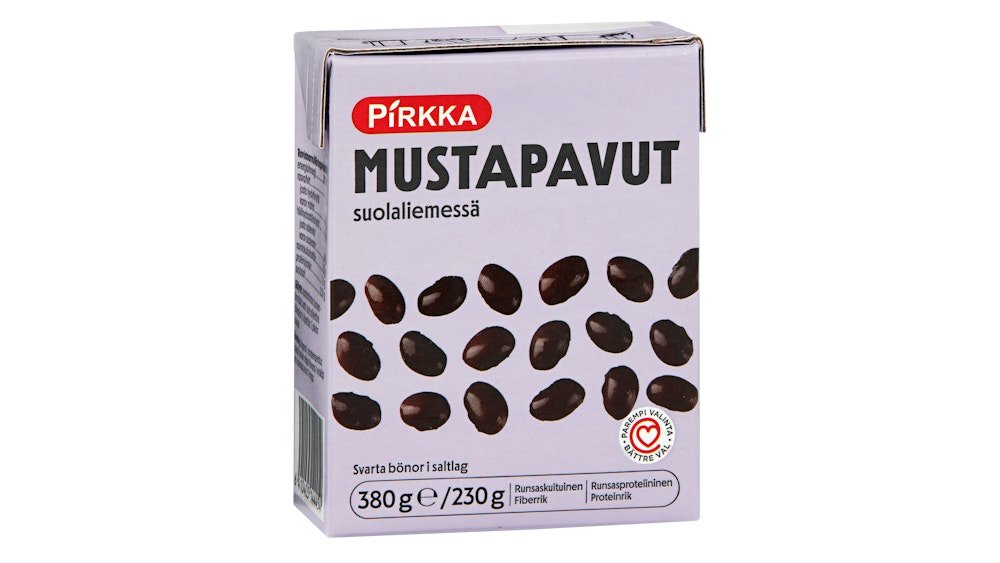 Pirkka mustapavut suolaliemessä 380g/230g
