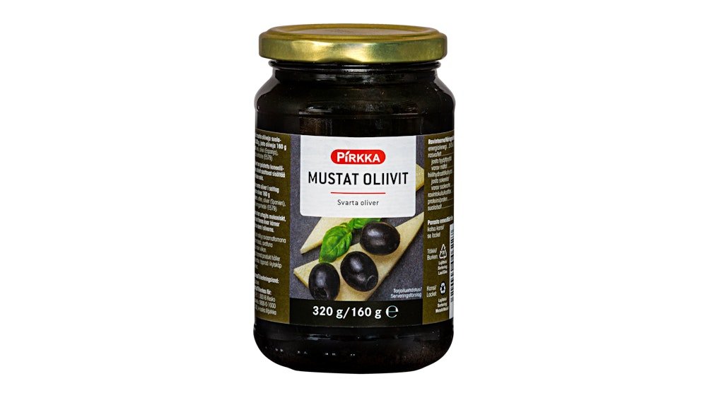Pirkka mustat oliivit 320g/160g
