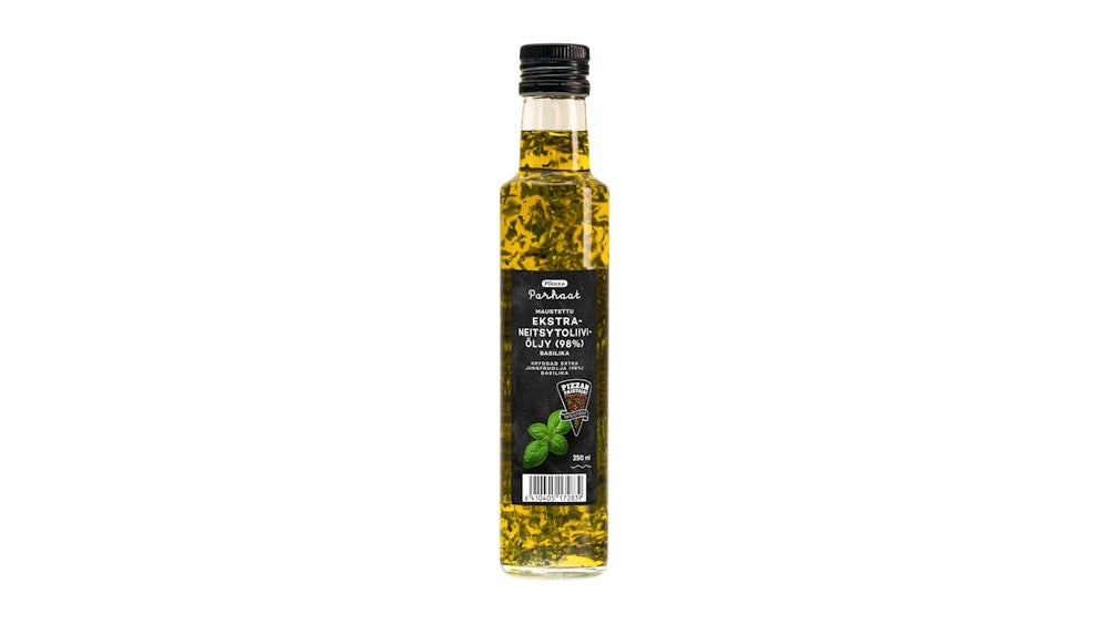Pirkka Parhaat maustettu ekstra-neitsytoliiviöljy (98 %) basilika 250ml Pizzanpaistajat