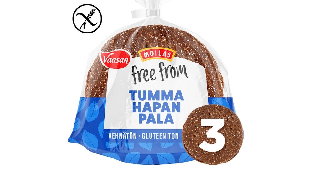 Vaasan Moilas Free From Tumma hapanpala 3kpl/210g gluteeniton tumma palaleipä
