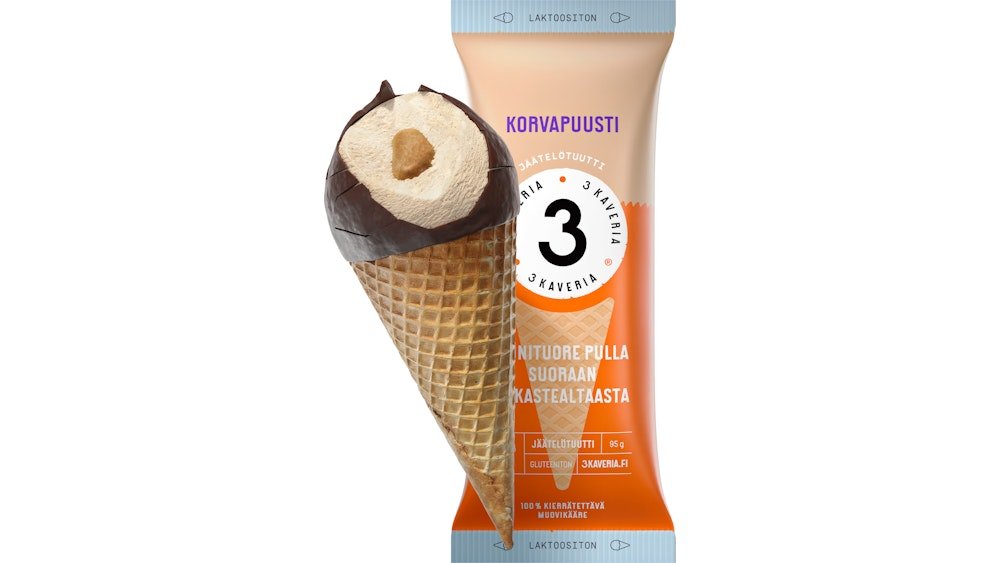 3 Kaveria laktoositon korvapuusti jäätelötuutti 150ml/95g