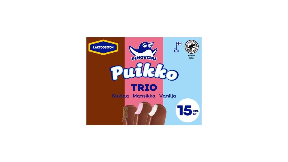 Pingviini Puikko laktoositon kermajäätelöpuikkolajitelma monipakkaus Trio 15x32g