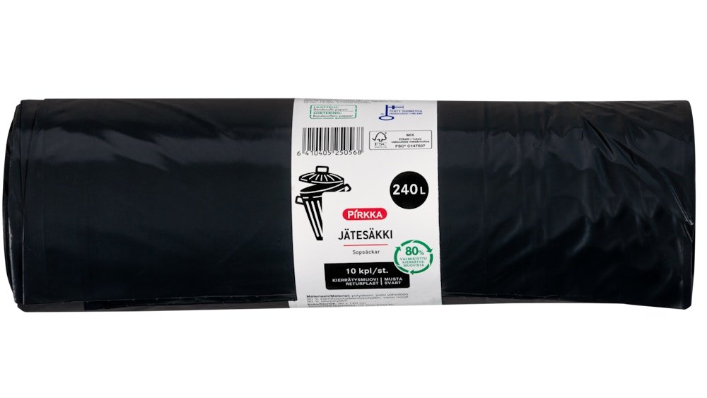 Pirkka jätesäkki musta 240l 10kpl