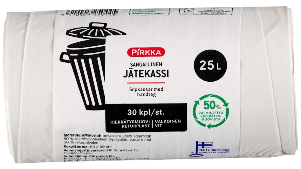 Pirkka jätekassi 25l 30kpl valkoinen